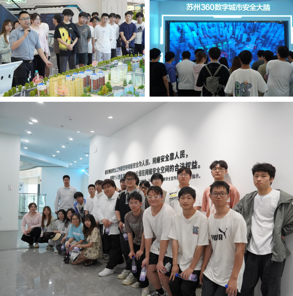 5月23日,团支部赴苏州360数字城市安全大脑进行网络安全实地观摩与体验。在展厅中,同学们参观了七大网络安全基础设施平台,学习了解城市网络安全态势感知、工业互联网安全、反诈骗技术等行业前沿趋势。同学们结合专业所学,在智能网联汽车安全检测中心、大数据协同安全技术国家工程实验室苏州分中心等空间中讨论体验,加深了对于网络安全的理解。