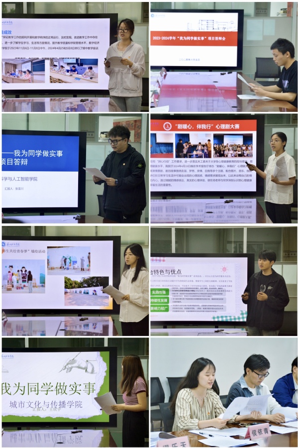 6月5日晚,2023-2024学年“我为同学做实事”项目答辩会在学生活动中心313顺利举行,由校团委和第三届学生会委员会组建评议小组,采用书面材料和现场答辩相结合的评分方式。活动伊始,各学生分会代表依次上台展示了各自项目的背景、主要做法、创新点及成效。其中,计算科学与人工智能学院学生会融通线上线下阵地,将项目引入学院、“一站式”学生社区,提供电脑义诊和知识科普等服务,努力打造智能化的学习环境。城市治理与公共事务学院学生会聚焦就创业方面实际需求,结合学院专业特色、社团力量、专业师资,点面结合开展了“模拟+”品牌活动、朋辈先锋帮扶活动和专业特色宣讲会等。城市文化与传播学院学生会依托学院校地共建项目,常态化实施“环保伙伴计划”,成立专项宣讲团,将垃圾分类带进大中小学,开展垃圾分类宣讲科普及技能提升。光学与电子信息学院学生会则搭建了“光e家服务平台”综合服务平台,实时动态了解学生的需求和困难,及时做好调研和问题反馈。
