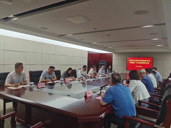 座谈会上,江苏省档案局局长、江苏省档案馆馆长顾俊对我校一行表示热烈欢迎,并就省档案局、省档案馆历史沿革、馆藏资源概况和资源开发利用情况、档案信息化及数字档案馆建设情况、全省档案“三支人才队伍”建设等情况作了详细介绍。芮国强对省档案局、省档案馆长期以来对苏州城市学院的关心和支持表示感谢,他简要介绍了学校的历史沿革,并围绕我校“转设、转型、提升”三大任务详细介绍了我校扎实推进特色鲜明、国内一流、国际知名的现代化高水平应用型大学建设的各项举措;他表示,作为省级特色专业和校级重点学科,我校正加快推进档案学专业和信息资源管理学科建设,期望在建设过程中能继续得到省档案局和省档案馆的指导和支持。与会人员还就档案技能人才培养和继续教育培训、江苏省档案职业专业人员竞赛、科学研究等方面展开了深入交流。