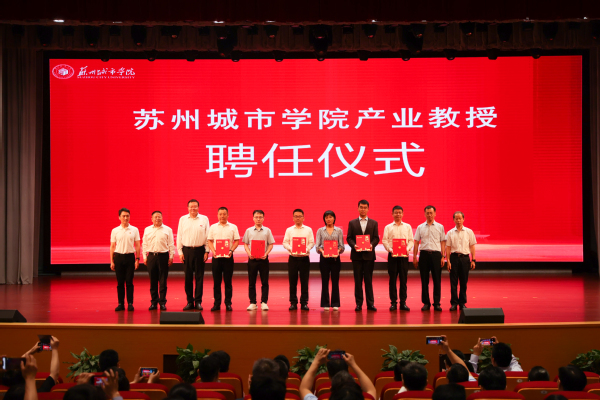 大院大所党建联盟成员单位(苏州城市学院)揭牌仪式也在现场举行。黄锡明、郁海明、曹靖、刘俊上台揭牌。随后进行我校产业教授聘任仪式,此次受聘的产业教授有:南京大学建筑规划设计研究院苏州分院院长、中麒润展(江苏)生态建设有限公司董事长、苏州麒峰文化发展集团有限公司总经理、董事长冯亚东,北京银行苏州分行数字金融部总经理卞文君,苏州科沃斯机器人股份有限公司研发中心高级经理刘雪艳,苏州恩欧特智能科技有限公司总经理杨志,苏州大数据研究院资深研究员陈以恒,苏州市健康养老产业发展集团有限公司党委委员、副总经理吴奇。谢飞、徐卫、石志伟、田嘉勇、赵志宏上台为新聘产业教授颁发聘书。