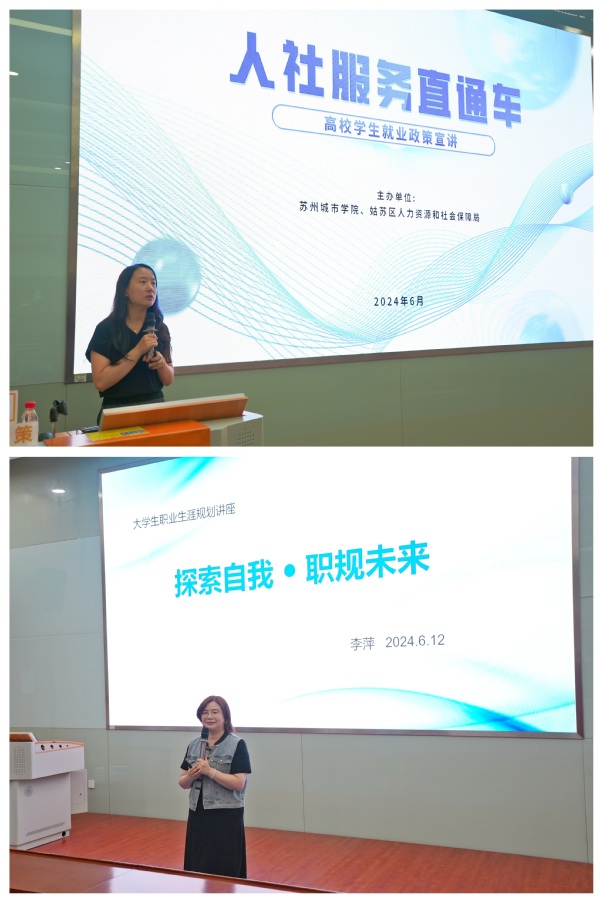 为贯彻落实国家、省、市关于高校毕业生等青年就业创业工作的决策部署,做好高校毕业生就业工作,我校于6月12日与姑苏区人力资源和社会保障局联合举办2024年高校青年就业赋能专项行动暨苏州城市学院职业规划专题讲座。
