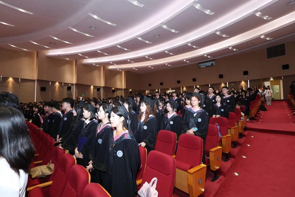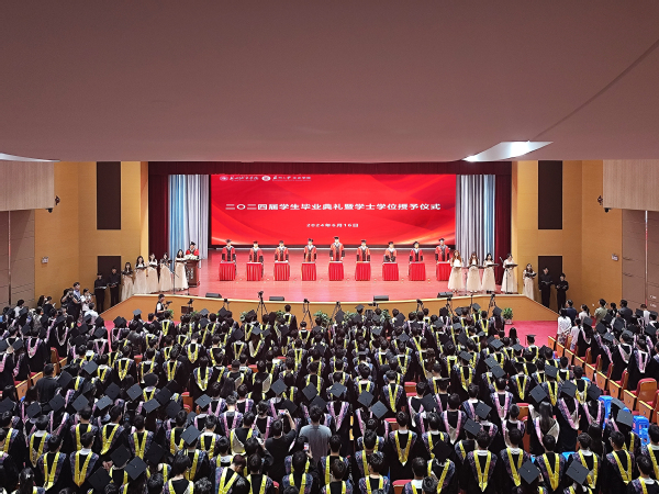 6月16日,我校在综合楼多功能厅举行2024届学生毕业典礼暨学士学位授予仪式,仪式分四场举行,共同见证同学们大学本科学业的顺利完成,开启人生新的篇章。校领导、各学院及相关职能部门负责人、全体毕业班班主任、毕业生家长代表和3100余名毕业生参加典礼。