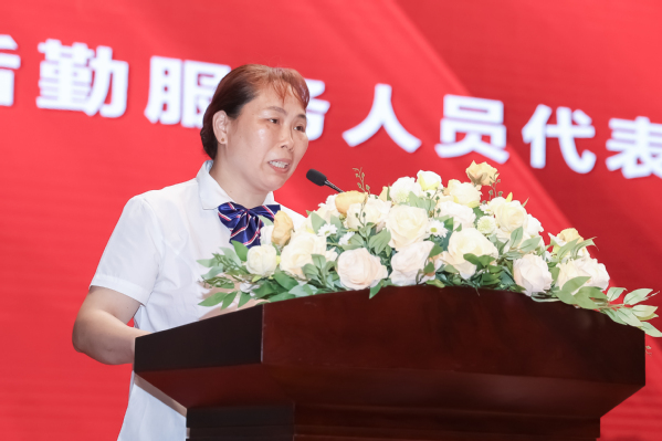 后勤服务人员代表薛芳也来到毕业典礼现场,她给毕业生们送上临别赠言:无论大家飞得多远,苏州城市学院,以及每一位宿管阿姨,永远都是大家的后盾与港湾,希望大家常回家看看,祝福大家创造更加辉煌的未来。