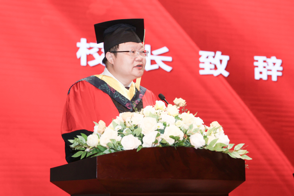 校长赵志宏致辞。作为新时代的青年,责任在肩,在大家即将踏上新征途,开启人生崭新篇章之际,赵志宏饱含深情地对毕业生们提出三点期望:一是希望大家坚定理想信念,做赶考路上的追梦人;二是希望大家练就过硬本领,做博学广识的“多面手”;三是希望大家勇担时代重任,做不负青春的奋斗者。他祝愿大家以时不我待的奋进姿态和永不言败的精神状态,“但行好事、莫问前程”,用自己的努力、自己的智慧、自己的力量去寻找生命的意义和人生的价值。