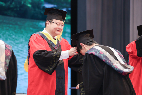 同学们9人一组依次上台,导师们为大家颁发学位证书、合影留念。
