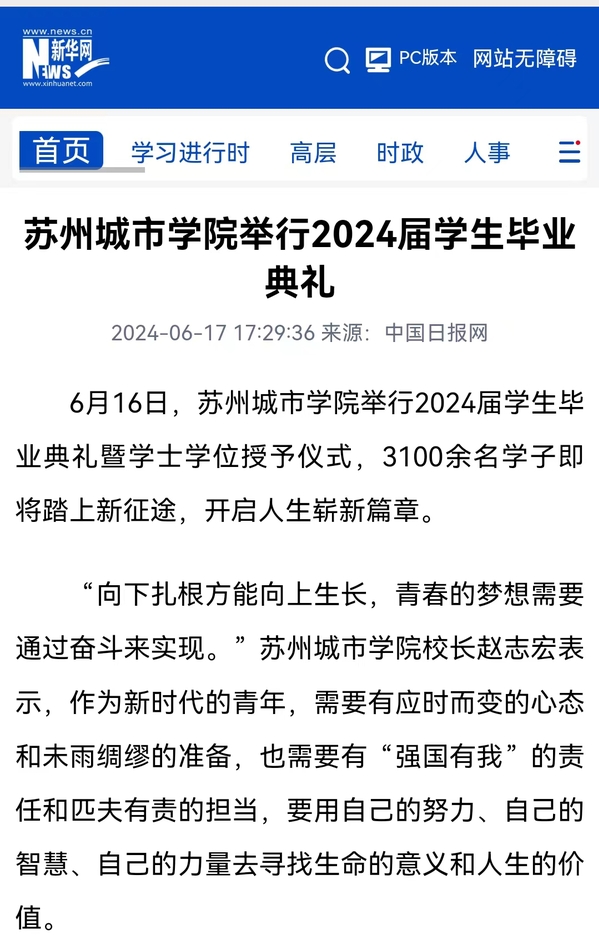 6月16日,苏州城市学院举行2024届学生毕业典礼暨学士学位授予仪式,3100余名学子即将踏上新征途,开启人生崭新篇章。