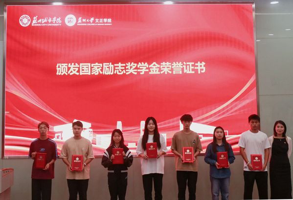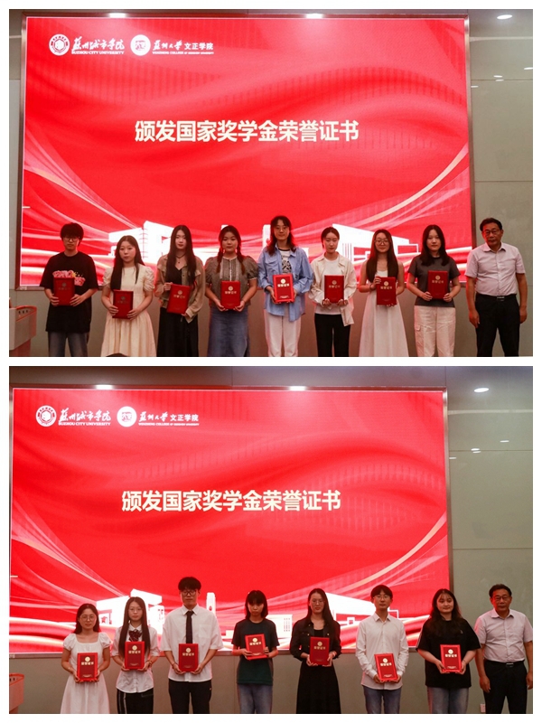 崔苏妍为国家励志奖学金获奖学生代表颁发证书。