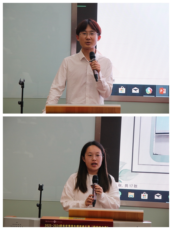 学校2024年学生标兵宣讲团成员丁迅、廖欣雨进行宣讲。丁迅从学习、科研竞赛、获奖荣誉等方面分享其心路历程和成长感悟,并表示作为新时代的大学生,要始终坚持对梦想的执着,砥砺前行,矢志不渝。廖欣雨则从科研竞赛、学生工作、专业学习等方面分享其经验,鼓励学弟学妹们善用学校资源,管理有限时间,用青春诠释坚持和奋斗的意义。