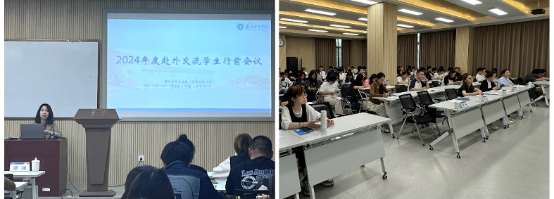 为切实做好我校2024年暑期及秋季学期赴国(境)交流学习学生的行前说明和安全教育工作,保障学生在国(境)外交流学习活动的顺利开展,6月19日晚,我校于国际交流学院301多功能报告厅召开2024年度赴外交流学生行前会议。国际合作交流处(港澳台办公室)综合科科长梅莹,党委保卫部(保卫处)综合科梁秀,及2024年暑期赴外研修项目领队陈芳、徐宁出席,2024年暑期及秋季学期全体赴外交流学生参会。会议由国际合作交流处(港澳台办公室)合作交流科潘涵主持。