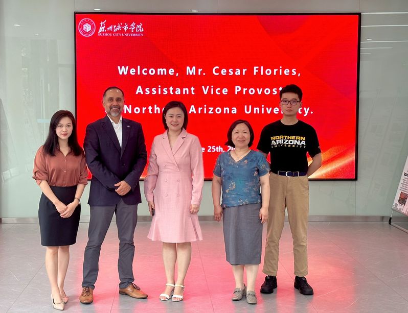 6月25日上午,美国北亚利桑那大学助理副教务长、国际教育中心主任Cesar Flores和北亚利桑那大学驻中国办事处白玉萍老师来我校访问交流。国际合作交流处处长王宁、合作交流科科长邓小玲及相关人员参与接待。