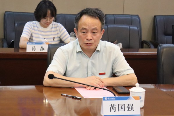 芮国强致欢迎词,他对江苏省档案馆一行的到来表示热烈欢迎并对省馆及南京大学对我校档案学专业建设和学科发展的大力支持表示感谢。他向来宾介绍了我校转设以来的基本情况,重点介绍了档案学专业在应用型人才培养方面的创新举措和取得的阶段性成果。