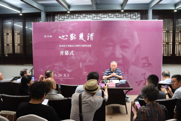 为迎接中华人民共和国成立75周年,深入学习宣传贯彻习近平文化思想,积极传承和弘扬中华优秀传统文化,6月26日,由苏州市文学艺术联合会主办,苏州市文艺之家、苏州市书法家协会承办,苏州城市学院党委宣传部协办的“心迹双清——纪念沈子丞诞辰120周年书画展”在吴门书道馆举办。苏州市文联党组成员、副主席沈鸣,著名学者、书法家华人德,我校党委常委、宣传部部长仲宏,我校师生代表以及书法爱好者等百余人共同参加了本次活动。