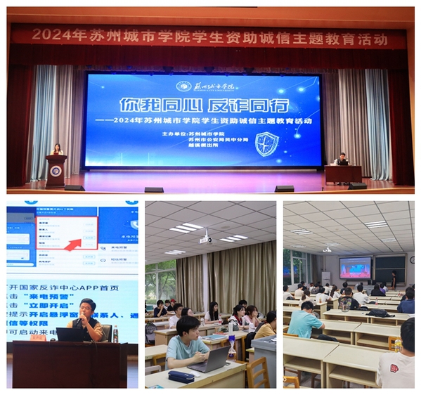 6月6日,党委宣传部、党委学生工作部(学生工作处)、党委保卫部(保卫处)联合采取线上线下相结合的方式组织开展资助诚信反诈知识直播活动。此次活动邀请了苏州市公安局吴中分局“意识防”专班讲师朱声亮主讲,朱老师结合真实案例分析,使同学们进一步提高征信意识、风险意识,树立正确的消费观、成才观和价值观。
