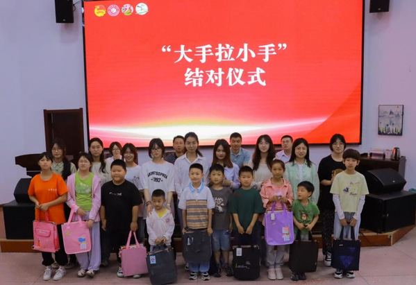 为更好地促进暑期社会实践团队学生与“爱心暑托班”学员的沟通交流,仪式进行了“大手拉小手”结对。实践团队全体学生与“爱心暑托班”学员一对一结对,并赠送爱心书包,建立了紧密的关系,这将有助于暑期社会实践团队全体学生更加深入地投身实践,为当地发展注入了新的活力和动力。