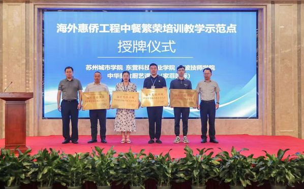 研讨会上,我校作为海外惠侨工程中餐繁荣基地联盟成员和培训教学示范点应邀参加授牌仪式。