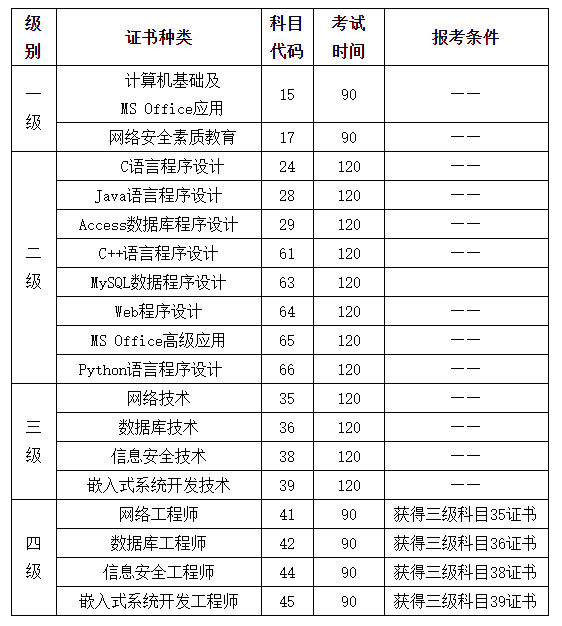 (2)四级科目获证条件:四级科目成绩达到合格线,并已经(或同时)获得三级相关证书。