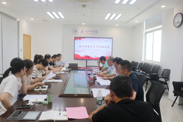 为扎实做好部门新学期开学各项工作,开好局、起好步。8月27日上午,教务处在综合楼208会议室召开新学期工作推进会。副校长高雷、教务处处长许宜申、副处长张毅驰、顾荣庆出席会议,教务处各科室工作人员参加。会议由许宜申主持。