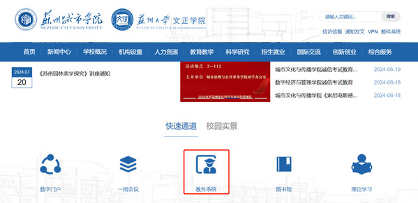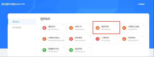 2.校外网络请先登录VPN,点击VPN界面“教务系统”进入。
