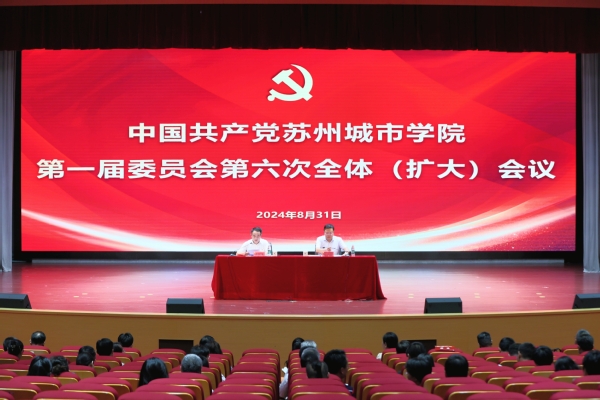 8月31日下午,中国共产党苏州城市学院第一届委员会第六次全体(扩大)会议在综合楼多功能厅召开,出席会议的校党委委员有21人,校纪委委员,全校在职副处职及以上干部(含聘任制),部门临时负责人,县(区)级及以上党代表、人大代表、政协委员,校民主党派代表及无党派人士代表列席会议。全会由校党委常委会主持。