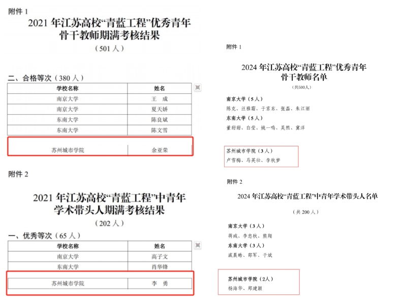 近日,江苏省教育厅公布2021年江苏高校“青蓝工程”期满考核结果,经学校考核推荐、省教育厅认定,我校基础教学部李勇老师获中青年学术带头人期满考核优秀等次,城市治理与公共事务学院余亚荣老师获优秀青年骨干教师期满考核合格等次。