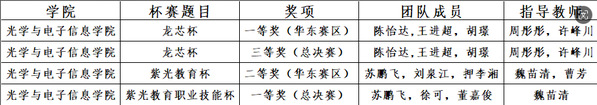 8月21日,由工业和信息化部人才交流中心举办的第八届全国大学生集成电路创新创业大赛全国总决赛在山东烟台哈尔滨工程大学研究院圆满落下帷幕。本届大赛分为线上初赛、赛区赛和全国总决赛3个阶段。光学与电子信息学院首次组织参赛,共计选派4支队。过紧张激烈的角逐,最终斩获全国总决赛一等奖1项,三等奖1项,华东赛区一等奖1项,二等奖1项。