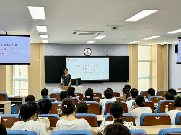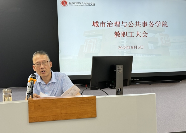 9月5日下午,城市治理与公共事务学院召开全体教职工会议,总结2024年上半年工作,部署新学期工作。校党委常委、副校长黄涧秋,城市治理与公共事务学院党委书记解燕、副院长丁彩霞、院长助理史新广及全院教职工参会。会议由解燕主持。
