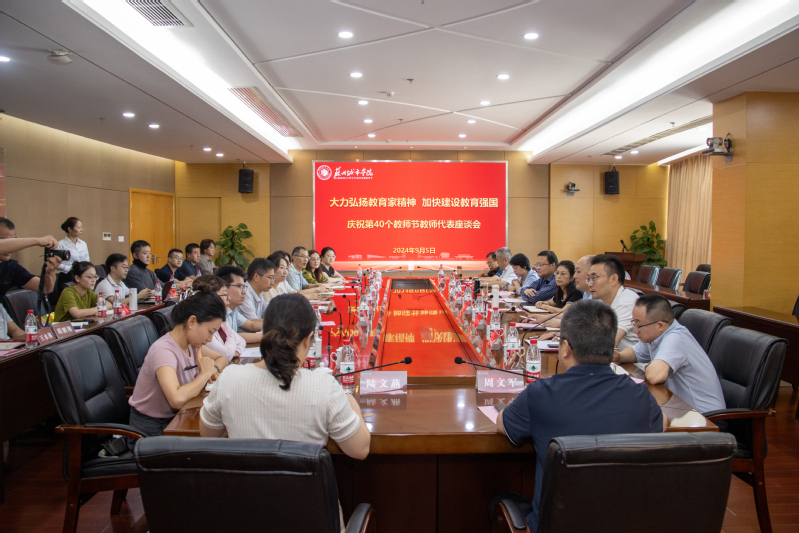 9月5日下午,我校庆祝第40个教师节教师代表座谈会在综合楼三楼大会议室召开。本次座谈会以“大力弘扬教育家精神 加快建设教育强国”为主题,校党委副书记、校长赵志宏,校党委副书记周玉玲,有关职能部门负责人和18位教师代表出席座谈会。座谈会由人事处(党委教师工作部)副处(部)长李振主持。