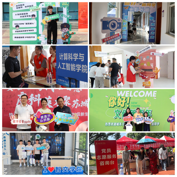 当天,学校相关部门和二级学院推出丰富多彩的迎新活动,帮助同学们快速融入校园生活。团委通过打造“苏城院通关文牒”,帮助新生熟悉校园环境。同步设计“翠微知遇”主题文创,包括A5笔记本、卡套、折扇、帆布袋等4大品类,学生可通过参与线下活动以及线上抽奖获得。城市文化与传播学院为表达对学院新生的热烈欢迎,举办“‘文’光璀璨,‘传’颂新章”迎新主题系列活动,包含“启航文传·筑梦未来”签到打卡、“启梦文传·新生印记”合影留念、“启程文传·未来可期”创意抽奖三个环节,协助新生快速建立起与学院的深厚感情。城市治理与公共事务学院通过引导新生参与“四类印记”活动,让新生在“指尖印记”中感悟身份转变的定力、在“非遗印记”中探秘苏州文化的魅力、在“闯关印记”中体验深耕笃行的毅力、在“惊喜印记”中收获城务文创的活力。数字经济与管理学院迎新活动由迎新启航,“礼”遇未来、梦启校园,足迹留痕、心语“新”愿,畅想未来、以心迎新,怦然“新”喜,以及新生家长会共五个内容组成,精彩纷呈。设计与艺术学院为了激发新生的学习热情,增强学院归属感,鼓励学生规划未来,举办“艺启未来•时光信笺——设计与艺术学院新生寄语未来之旅”活动。通过设立“时光机”信箱,让新生在入学之初就与未来的自己进行一次跨越时空的对话,见证成长的足迹。计算科学与人工智能学院迎新活动以“编程未来”为主题,围绕“融入苏城”“融入计科”等目标,分为“初见‘计’忆”——文创领取、“新‘芯’相印——校园打卡”等环节,帮助新生体验学院特色。光学与电子信息学院开展“光”好遇见你,“电”亮新未来——我与光电学院的第一次相遇主题系列迎新活动,探索以“科技迎新”为主线,包含:“初绘蓝图”“初识榜样”“初遇惊喜”“初感温暖”“初触科技”“初感活力”六个板块。智能制造与智慧交通学院的迎新活动包含“光影智启”——拍立得下,定格的是青春的智慧之光;“智趣打卡”——在探索中,每一步都留下成长的足迹;“甜梦启航”——九月星辰下,共享生日的甜蜜,携手启航;“礼赞未来”——定制大礼包四个部分,满载对新生未来的美好祝愿与期待。