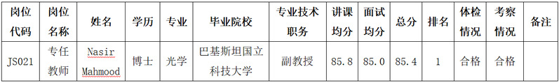 根据《苏州城市学院2024年度上半年高层次人才招聘公告》,经过试讲、面试考核、资格复审、心理测试、体检、政审等程序,拟录用以下1名同志,现公示如下: