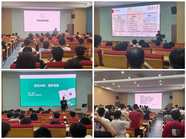 随后,优秀学生代表贺靖祺和余赛龙向同学们分享了他们的考研心路历程,包括心态调整、择校选择、时间规划以及如何利用真题进行高效备考等宝贵经验。他们强调了考研的重要性和紧迫性,建议同学们深入了解相关专业及院校的课程设置、考试信息,积极投入基础课程和专业课程的学习。他们还详细分享了自己在备考各个科目,尤其是专业课方面的学习方法和复习策略。