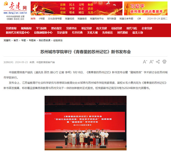 9月18日,《青春里的苏州记忆》新书发布会暨“融城思政”学术研讨会在苏州城市学院举行。