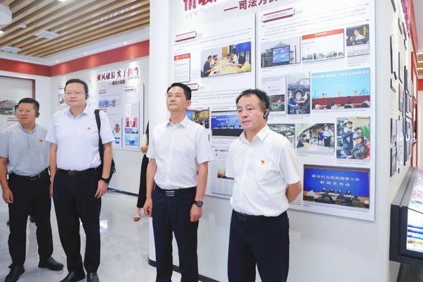 校党委理论学习中心组成员首先调研了苏州市中级人民法院,苏州市中级人民法院党组书记、院长蔡绍刚热情接待,并介绍苏州中院发展情况。中心组成员依次调研了苏州中院院史陈列室、“未来法官助手”——司法人工智能辅助办案系统、档案室以及民商事审判法庭等,全面了解苏州中院的发展历程、奋斗历程、特色经验做法等。调研过程中,双方围绕拥抱数字浪潮机遇促进改革创新,推动院校资源共享、优势互补,完善协同育人机制和长效合作机制等问题展开深入交流,对习近平法治思想有了更加深刻的认识。