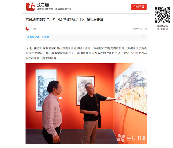 近日,由苏州城市学院和苏州市美术家协会联合主办,苏州城市学院党委宣传部、苏州城市学院设计与艺术学院、苏州城市学院美育中心、苏州长川美术馆承办的“礼赞中华 艺述我心”师生作品展在苏州长川美术馆开幕。
