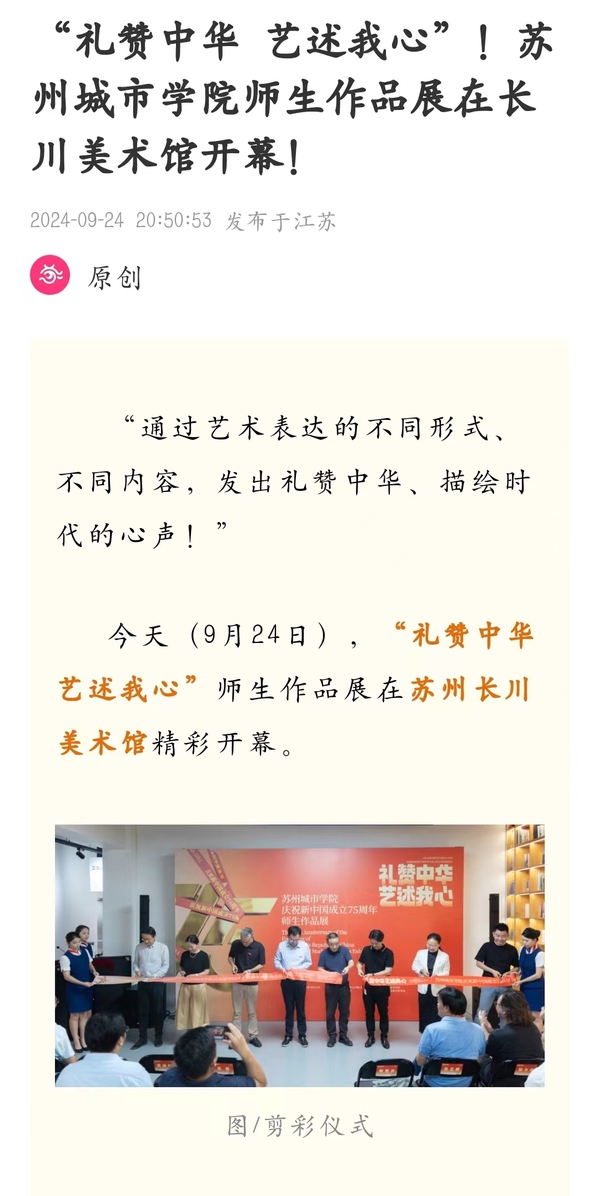 今天(9月24日),“礼赞中华 艺述我心”师生作品展在苏州长川美术馆精彩开幕。