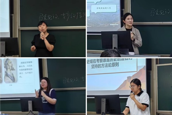 教学展示环节,邓会敏、张昉、刘晋如、尚晨靖四位老师依次进行展示。四位老师通过准确明晰的概念引入,生动典型的案例分析讨论,精心设计的互动问答,深入浅出地阐述了“为什么要信仰马克思主义”“什么样的人生更有价值”“事物的普遍联系与增强系统思维能力”“人民群众是历史的创造者”,充分展现了扎实的教学功底以及在教学设计上的创新巧思。