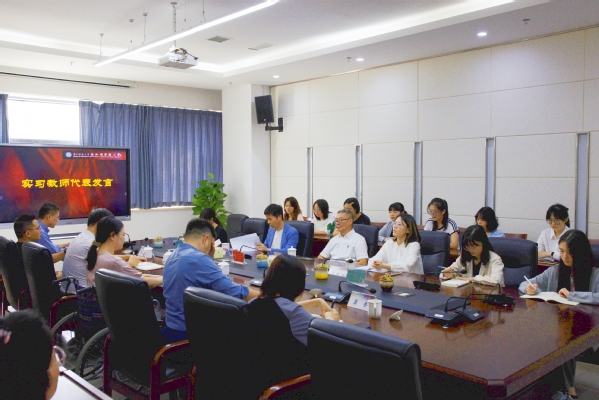 华师苏实小指导教师代表和我校实习生代表发言。指导教师代表表示一定会与实习生保持良好沟通交流,多关心实习生的工作与生活。我校实习生代表感谢学校提供的实习机会,表达了真挚的求学之心,对未来在华师苏实小为期两个月的教学生活心怀憧憬。