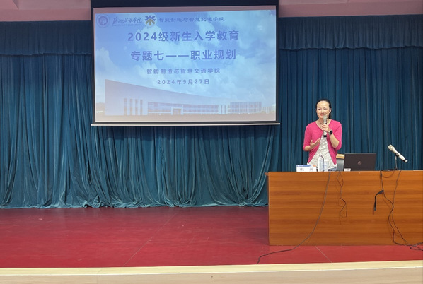为帮助新生明确职业方向,树立正确的职业观,科学规划大学生涯,9月27日下午,智能制造与智慧交通学院开展新生入学教育之职业生涯规划教育,本次讲座邀请学校招生就业处副处长宋丹担任主讲,学院2024级全体学生参加。讲座由学院团学办公室李禛芸主持。