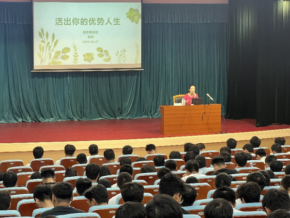 宋丹以“活出你的优势人生”为主题,从“自我身份认知”“职业生涯规划探索”和“发挥自我优势”三个方面进行阐述,明确指出了新生做好职业生涯规划的重要性和必要性。她通过理论讲授、案例分享、情景带入、现场互动等形式,强调树立正确的职业观除了将个人成长与时代发展有机结合外,还需要实现“人职匹配”,即“择己所爱、择己所长、择己所利、择世所需”。此外,宋丹还鼓励同学们在职业规划过程中勇敢跳出舒适圈,摆脱依赖路径,实现突破性成长。讲座尾声,她向同学们介绍了学校的职业生涯咨询服务,希望同学们能够积极思考、主动探索,为大学生涯的全面发展做好充分准备。