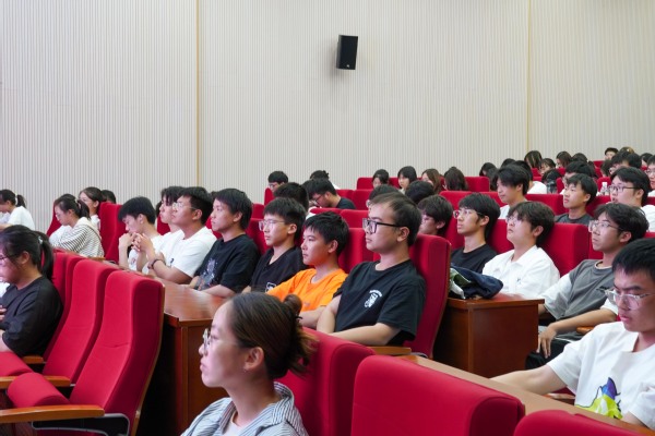 随后,胡荣从“我们该如何度过大学生活”引入,展示了学院近年来优秀学生的毕业去向,引导新生树立正确的目标和规划,同时号召同学们“做奋斗者”,勤于积累、勇于执行,将“明德致知、融合创新”的院训作为精神追求和行为准则,以“强国有我”的豪情谱青春华章。