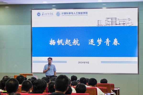 为深入贯彻落实党的二十届三中全会精神,引领广大新生坚定理想信念,强化使命担当,迈出“大学第一步”,9月27日,计算科学与人工智能学院于3-101开展2024级新生“书记第一课”,由学院党委副书记胡荣主讲,全体2024级新生参与。