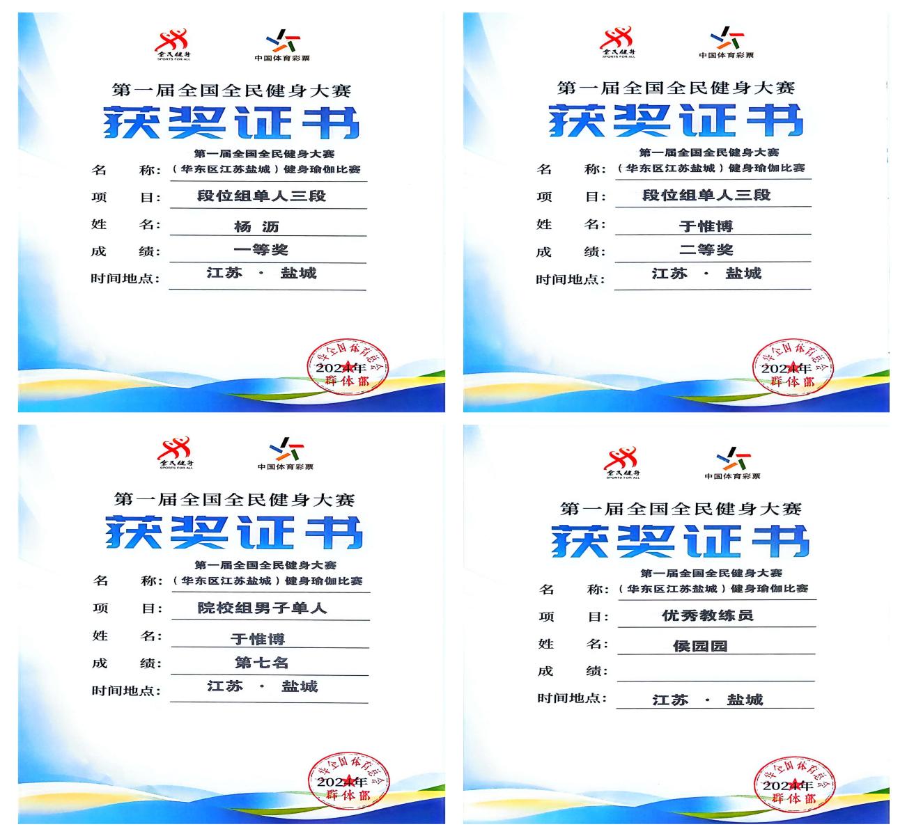 参赛选手们在各自的项目中展开了激烈的角逐。我校队员们在个人竞技项目中展现力量与柔韧的完美结合,展现了高超的竞技水平和良好的精神风貌,诠释了瑜伽的精髓与魅力,赢得了现场观众的阵阵掌声和评委们的高度评价。经过激烈角逐,我校运动员凭借精湛的技艺和出色的表现最终获得了一等奖的优异成绩,体育系教师侯园园荣获“优秀教练员”称号,我校代表队荣获“优秀团队”称号。