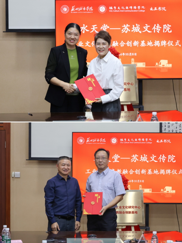 为进一步推动产业与高校的产教融合,探索协同创新育人路径,由苏州城市学院城市文化与传播学院与苏州水天堂食品生产有限公司联合设立的“工业文化产教融合创新基地”揭牌仪式于10月8日下午在学生活动中心举行。参加揭牌仪式的有苏州城市学院校发展委员会主任施盛威、文传院院长助理孙少华、广告专业负责人王静及老师与学生代表。苏州水天堂集团董事长吴琪、苏州水天堂人事总监徐海侠一行五人参加揭牌仪式。苏州市市场监管局原四级调研员、苏州大学MBA企业导师洪海作为特邀嘉宾出席了仪式。揭牌仪式由王静主持。