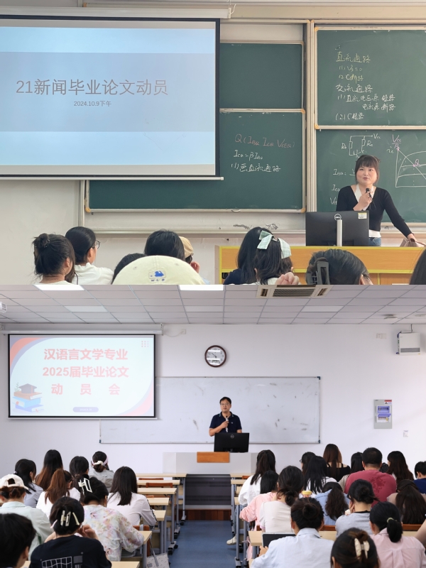 为进一步提升我院毕业论文整体质量,确保2025届毕业生毕业论文工作有序开展,城市文化与传播学院精心策划,分专业、分场次举办了毕业论文动员大会。这一系列大会覆盖了汉语言文学、广告学、新闻学、汉语国际教育、英语、日语六个专业,共计六百余名毕业班学生以线上或线下的形式参与动员。每一场动员大会都邀请学院各专业负责人及经验丰富的毕业论文指导老师参与并发表动员讲话。