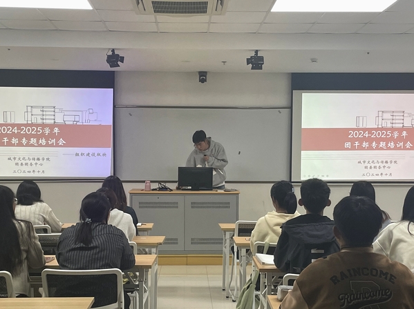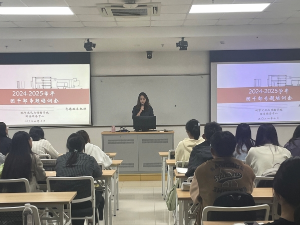 为深入学习贯彻党的二十届三中全会精神,认真落实团十九届三中全会各项部署,持续提升学院团干部的理论素养、业务水平和工作能力,城市文化与传播学院于10月14日举办团干部专题培训暨“青马公开课”,本次会议围绕思想引领、组织建设、志愿服务三个主题进行。团委团务中心指导老师徐宁、团委团务中心学生骨干以及2023、2024级团支书共同参加此次培训会。