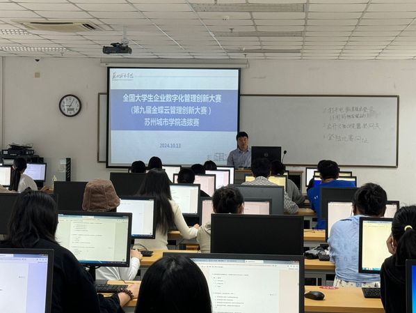 为充分发挥大学生竞赛在构建产业技能形成体系方面的积极作用,提升数字人才数字技能培养,激发学生创新活力,促进院校专业建设、教育教学与产业数字化深度融合,推动培养更多数字领域高素质人才,10月13日,数字经济与管理学院在数字中心202教室成功举办了全国大学生企业数字化管理创新大赛苏州城市学院校内选拔赛。此次选拔赛由数字经济与管理学院会计学专业负责,学院学生科技协会协同组织举办。