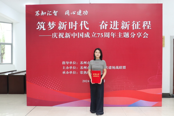 近日,在“筑梦新时代,奋进新征程”——庆祝新中国成立75周年主题演讲活动中,我校设计与艺术学院教师、校知联会副会长杨静老师顺利通过遴选并参加了主题分享会。此次活动由苏州市委统战部指导,苏州市校地合作共建统战联盟轮值高校常熟理工学院承办。苏州市委统战部常务副部长王燕红、苏州市委教育工委副书记徐卫以及苏州市校地合作共建统战联盟成员单位领导出席活动。