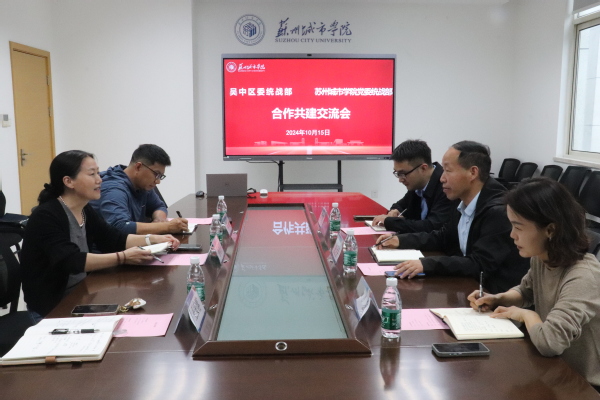 10月15日下午,吴中区委统战部常务副部长沈玉宝一行来我校调研交流。我校党委常委、组织部部长、统战部部长孙德芬参加座谈。