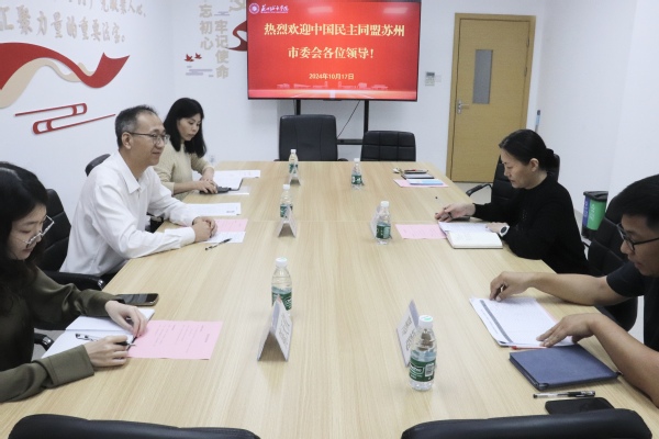 民盟苏州市委会组织处副处长王海丹、民盟苏州市委会组织处四级主任科员陈天仪,以及我校党委组织部副部长、统战部副部长(兼)邢超等一同参加座谈。