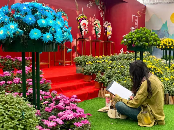 师生们还参观了菊花展。各式各样的菊花争奇斗艳,美不胜收。在“三岛奇遇记”景区中,不仅有美丽的自然风光,还有许多可爱的小猫,为学生们的写生之旅增添了几分趣味与温馨。
