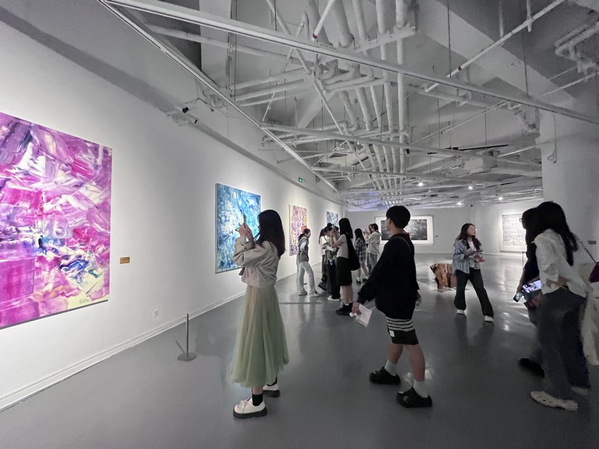 参观的最后一站是主场馆二楼的金鸡湖美术馆,馆内各种艺术装置、摄影作品和独特画作,将师生们拉进艺术家们的创作世界。不同材质的水墨江南、激光雕刻的苏州园林造型作品、漂浮悬挂的童年回忆主题装置等等,扑面而来的是丰富的艺术形式和创作手法带来的视觉冲击,让同学们不禁思考如何将生活中的发现和思考映射到创作设计中,通过艺术创作呈现不同的视觉效果。